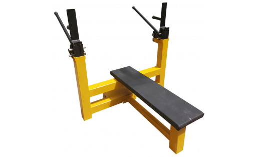 IPF Olympische Bank Extreme mit 100x100 mm Rahmen, normgerechtem Sitz (120x30 cm) und außergewöhnlicher Tragkraft von 700 kg. Industrielle 100-kg-Konstruktion für Powerlifting auf höchstem Niveau.